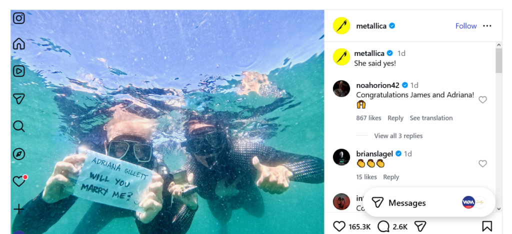 “Dia bilang ya!” tulis Metallica dalam keterangan unggahan tersebut.